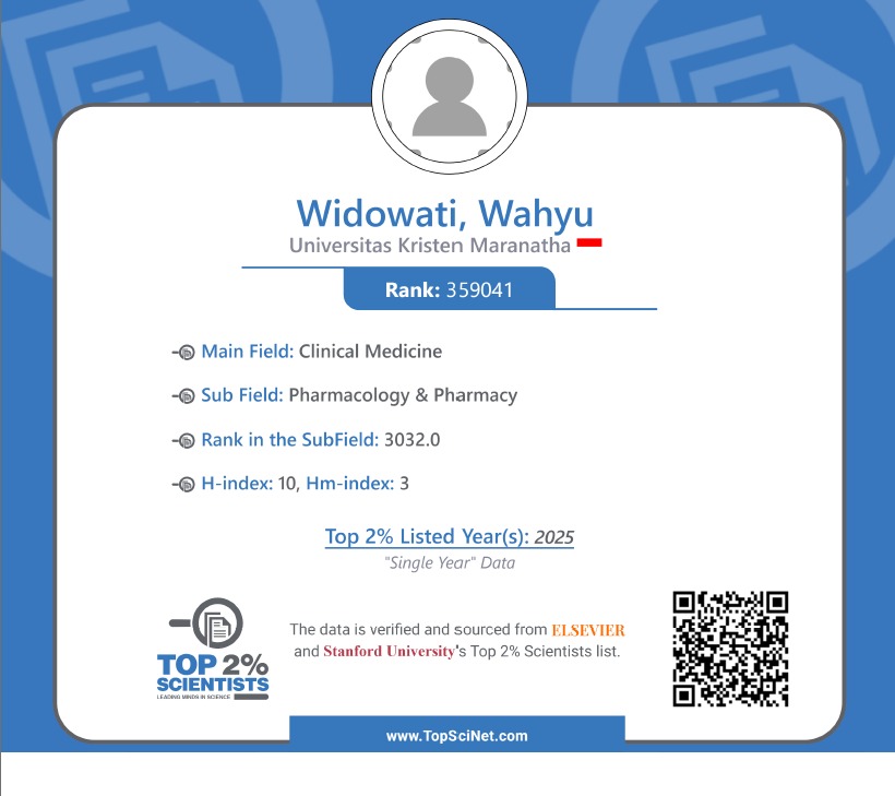 Sebuah capaian membanggakan kembali diraih oleh dunia akademik Indonesia. Widowati, Wahyu, dosen Fakultas Kedokteran Universitas Kristen Maranatha sekaligus tenaga ahli di PT Aretha Medika Utama, berhasil masuk dalam daftar World Top 2% Scientist tahun 2025.