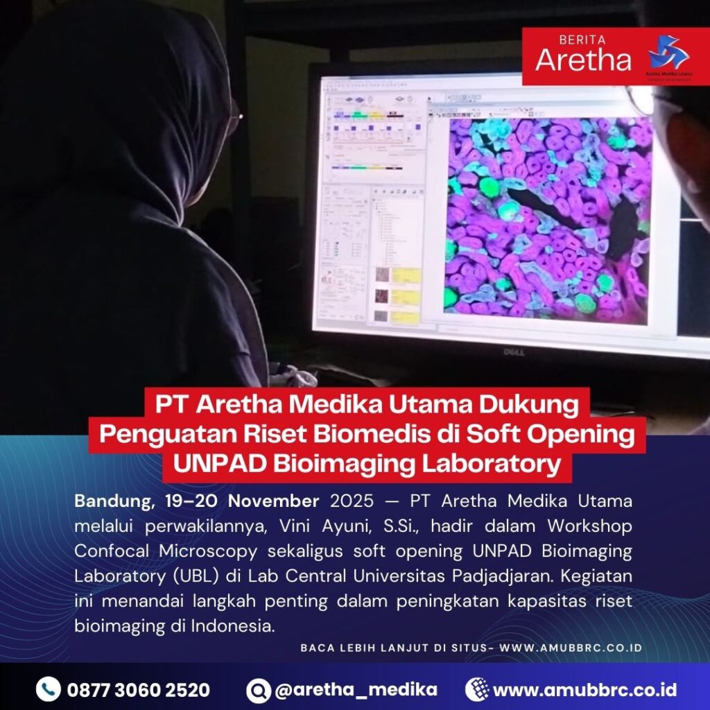 Bandung, 18–19 November 2025 — PT Aretha Medika Utama melalui perwakilannya, Vini Ayuni, S.Si., hadir dalam Workshop Confocal Microscopy sekaligus soft opening UNPAD Bioimaging Laboratory (UBL) di Lab Central Universitas Padjadjaran. Kegiatan ini menandai langkah penting dalam peningkatan kapasitas riset bioimaging di Indonesia.