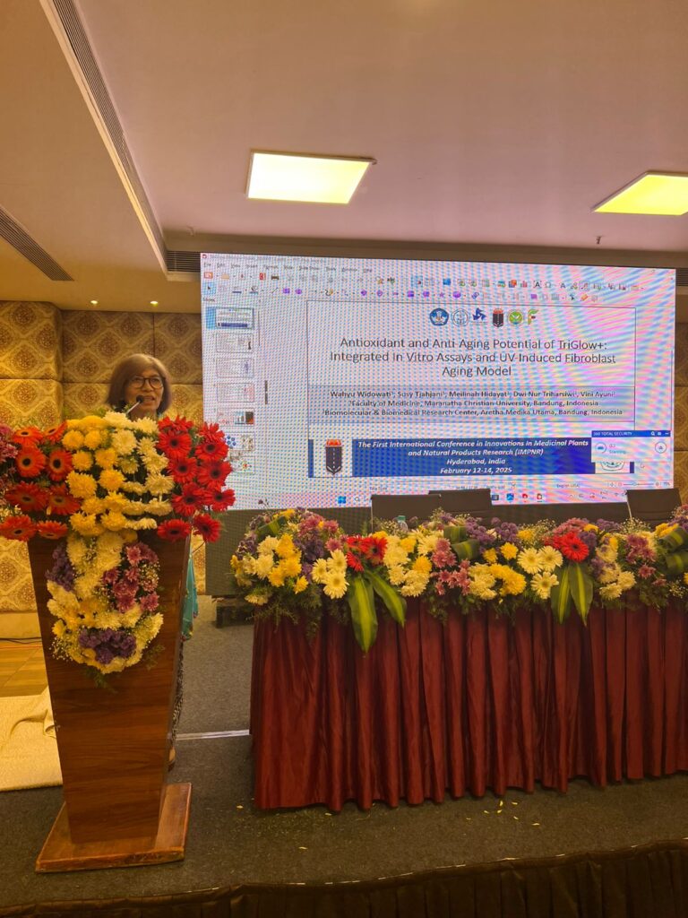 Dalam forum ilmiah internasional tersebut, Prof. Wahyu memaparkan hasil penelitian berjudul “Antioxidant and Anti-Aging Potential of TriGlow+: Integrated In Vitro Assays and UV-Induced Fibroblast Aging Model.” Penelitian ini merupakan kolaborasi antara Fakultas Kedokteran Universitas Kristen Maranatha dan Biomolecular & Biomedical Research Center, PT Aretha Medika Utama, Bandung.