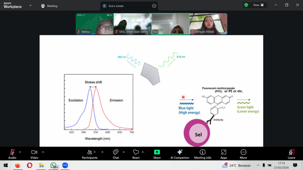 Dalam sesi pembelajaran, Team Aretha Medika Utama mempelajari prinsip dasar fluoresensi, termasuk proses eksitasi dan emisi cahaya, serta konsep Stokes shift, yaitu perbedaan panjang gelombang antara cahaya yang diserap dan yang dipancarkan oleh molekul fluoresen. Pemahaman ini menjadi dasar penting dalam penggunaan teknologi flow cytometry secara tepat dan akurat.